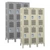 All standard doors of our metal lockers are louvered for air ventilation. Different air ventilation systems are available, including diamond perforations and mini louvers. Doors with no louvers have air holes on the top and bottom flange of door. Ventilation for sides and backs are available. Sports Series Lockers have Diamond Perforated Doors and Sides.